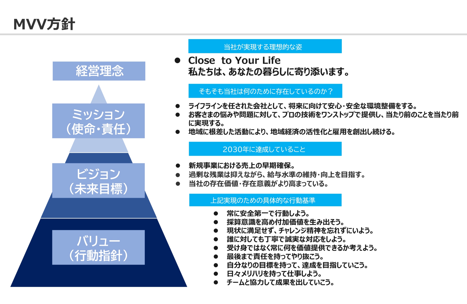 新たな時代の多様なニーズに応えられる企業として、また当社に寄せられる信頼と期待に応えられる企業として、常に時代の一歩先を見つめ、社会に大きな価値を提供し、持続可能な社会の実現に貢献してまいります。