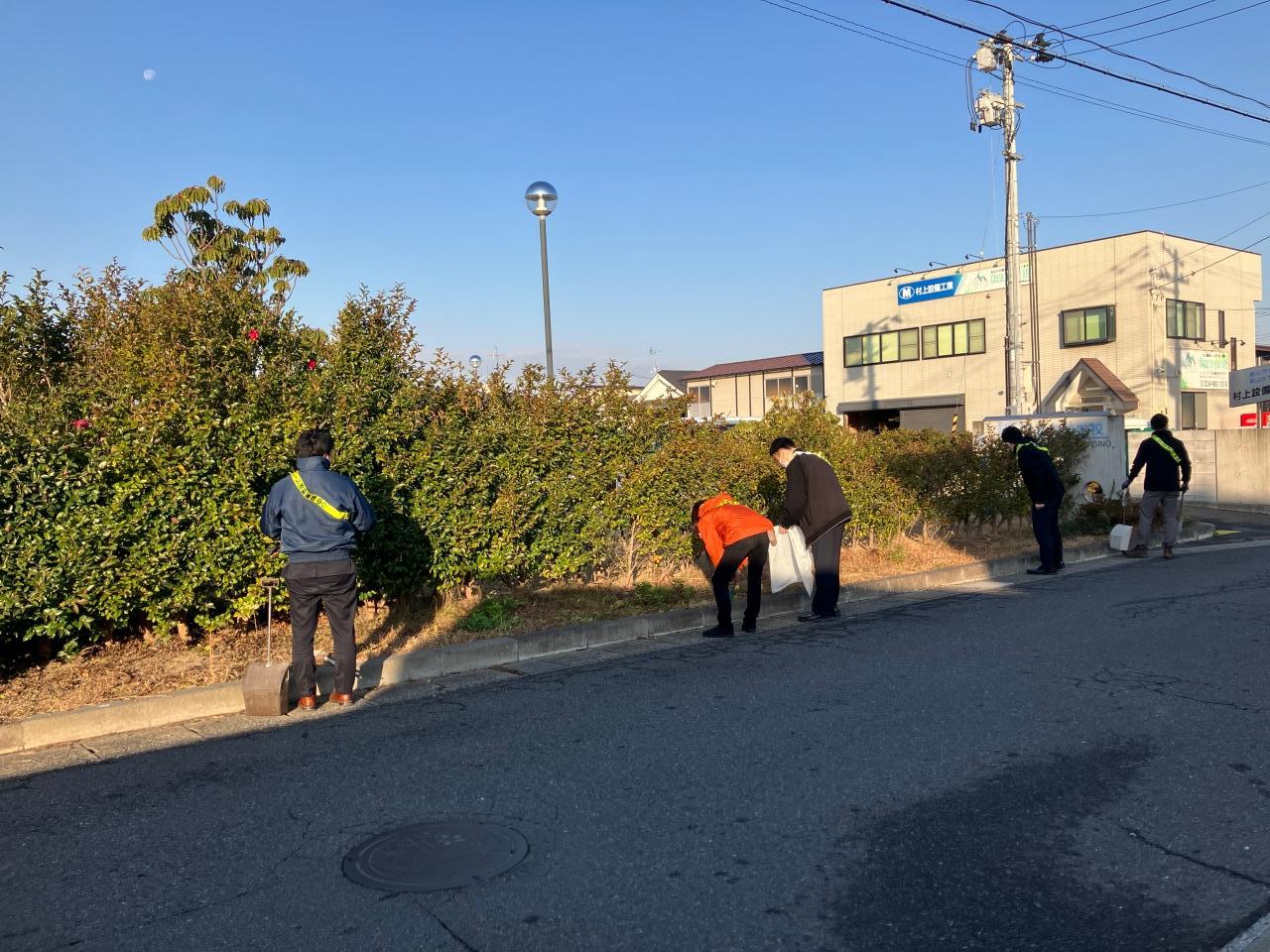 冷たい空気の中にも澄んだ冬の光が差し込み、社員一同で生活道路の清掃に取り組みました。